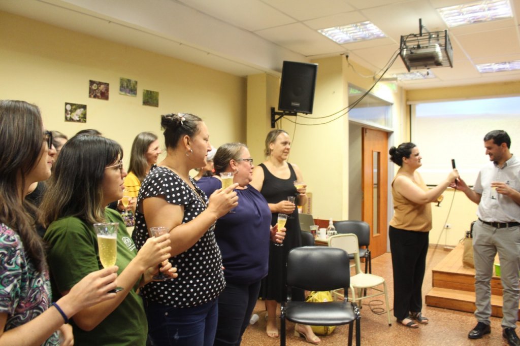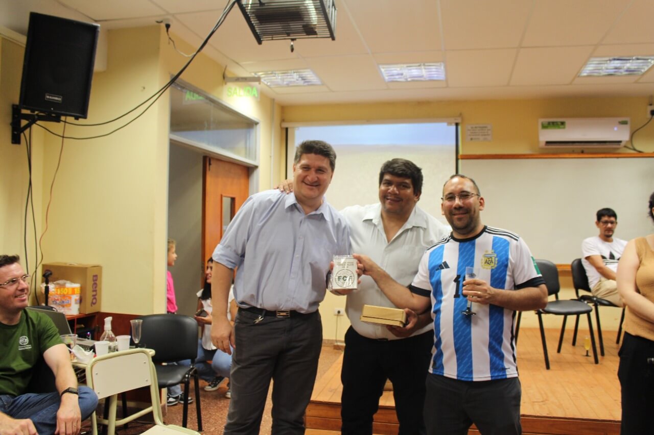 La celebración se realizó en el aula 3 de esta Casa de Estudios en el que se compartió una cena y brindis con los/as presentes luego de las palabras del decano, Ing. Fabián Romero.