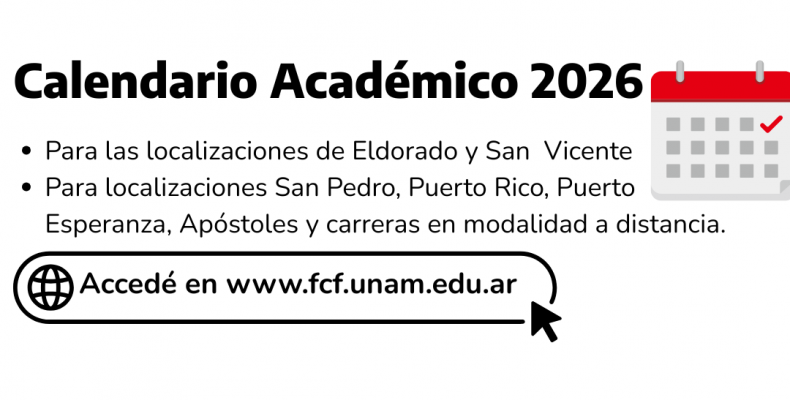 La Secretaría Académica de la Facultad de Ciencias Forestales informa que se encuentra disponible el calendario académico 2026: Para las localizaciones de Eldorado y San Vicente está disponible en el siguiente enlace: Calendario académico Eldorado- San Vicente Para las Tecnicaturas Universitarias (Localizaciones San Pedro, Puerto Rico, Puerto Esperanza, Apóstoles)…