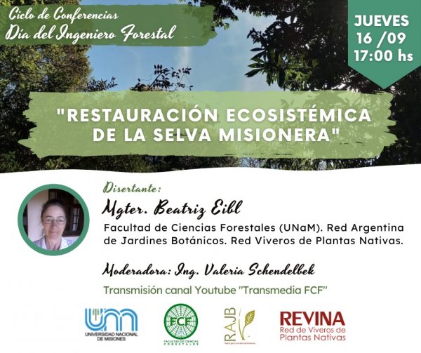 La Mgter. Beatriz Eibl acerca de la “Restauración ecosistémica de la selva misionera”. Y la Dra. Corina Graciano quien expondrá sobre “El rol de la mujer en la ingeniería forestal”.