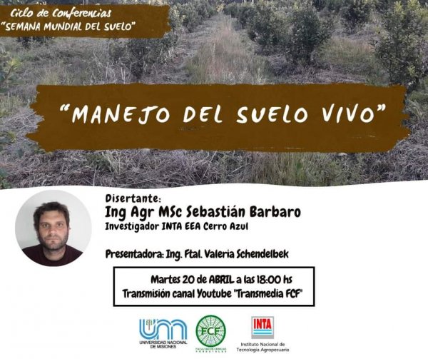 La conferencia tendrá como disertante al Ing. Agr. Msc. Sebastián Bárbaro quien es investigador del INTA EEA Cerro Azul y se transmitirá por el canal de Youtube “Transmedia FCF”.