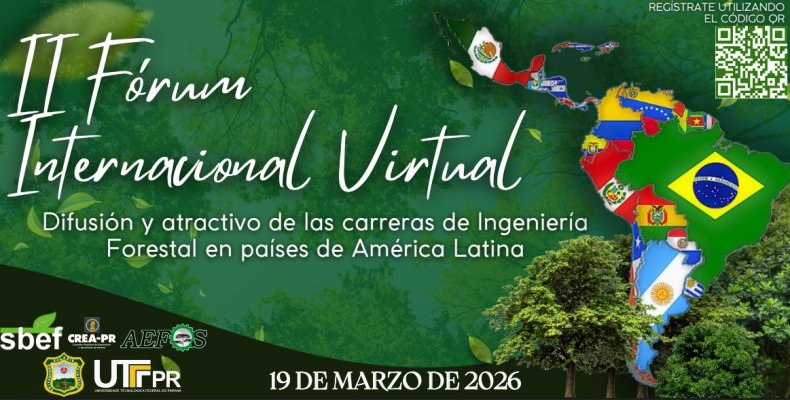 La carrera de Ingeniería Forestal de la Facultad de Ciencias Forestales (UNaM) fue invitada a participar del 2° Foro Internacional Virtual, organizado por la Universidad Tecnológica Federal de Paraná (Brasil) y la Universidad Nacional Agraria de la Selva (Perú).  El evento se realizará el jueves 19 de marzo, de 15:00 a 18:00 h en modalidad virtual. La participación es gratuita y contará con certificación.