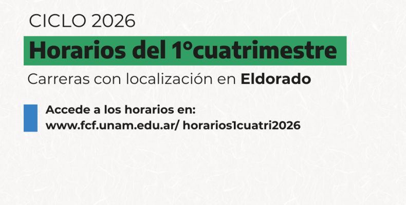 La Secretaría Académica informa los horarios de cursada del primer cuatrimestre para carreras presenciales que se dictan en la localización de Eldorado durante el ciclo lectivo 2026.