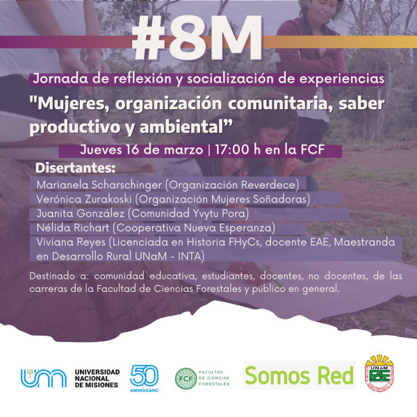 En el marco del Día Internacional de la Mujer del pasado 8 de marzo, la Comisión para la Implementación e Institucionalización del Protocolo y atención a las Víctimas de Violencia de Género en el ámbito de la FCF -UNaM, organiza la Jornada de reflexión y socialización de experiencias “Mujeres, organización comunitaria, saber productivo y ambiental”. La misma se desarrollará el jueves 16 de octubre a las 17:00 h en las instalaciones de la Facultad de Ciencias Forestales.