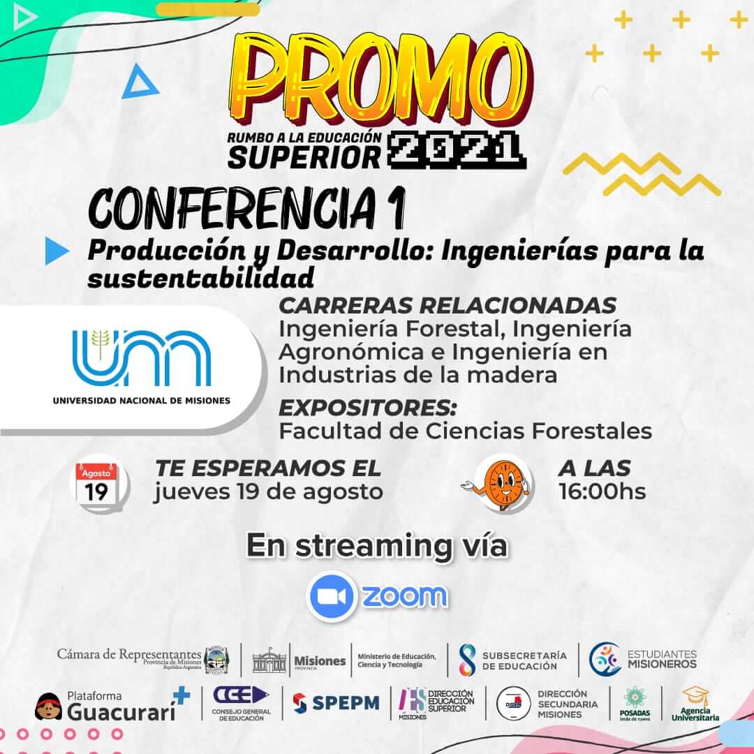 La Facultad de Ciencias Forestales participará este jueves 19 de agosto a las 16:00 h en el ciclo de webinars “Promo 2021. Rumbo a la Educación Superior”, con dos exposiciones acerca de las ofertas formativas de nuestra Casa de Estudios.