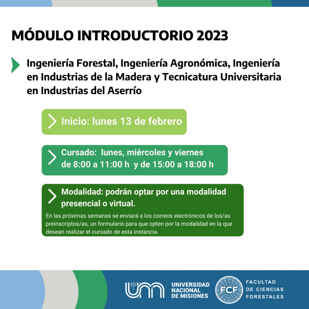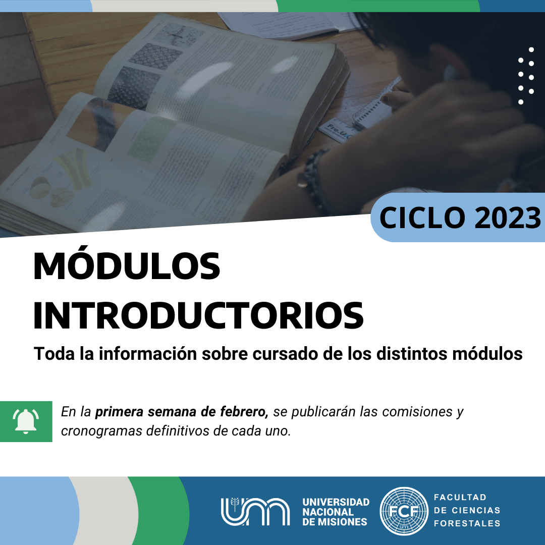 La Secretaría Académica de la Facultad de Ciencias Forestales, informa cómo estarán organizados los módulos de introducción a los estudios universitarios. Se trata de instancias para acompañar a los/as ingresantes en la transición de la escuela secundaria a la universidad. En ellos se abordan contenidos disciplinares específicos y también se ponen en prácticas estrategias de aprendizaje que favorecen la incorporación a los estudios superiores.