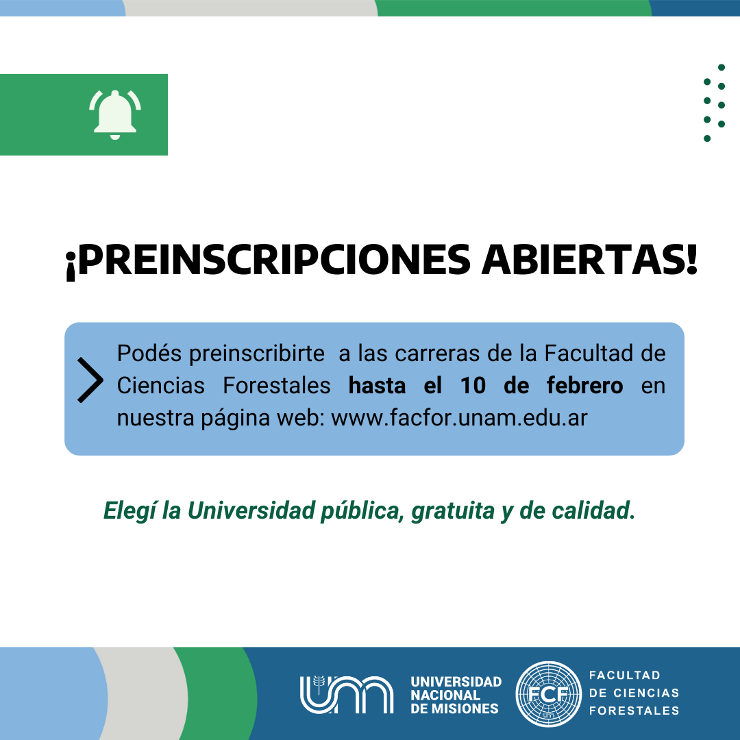 Ingeniería Forestal, Ingeniería Agronómica, Ingeniería en Industrias de la Madera y Tecnicatura Universitaria en Industrias del Aserrío