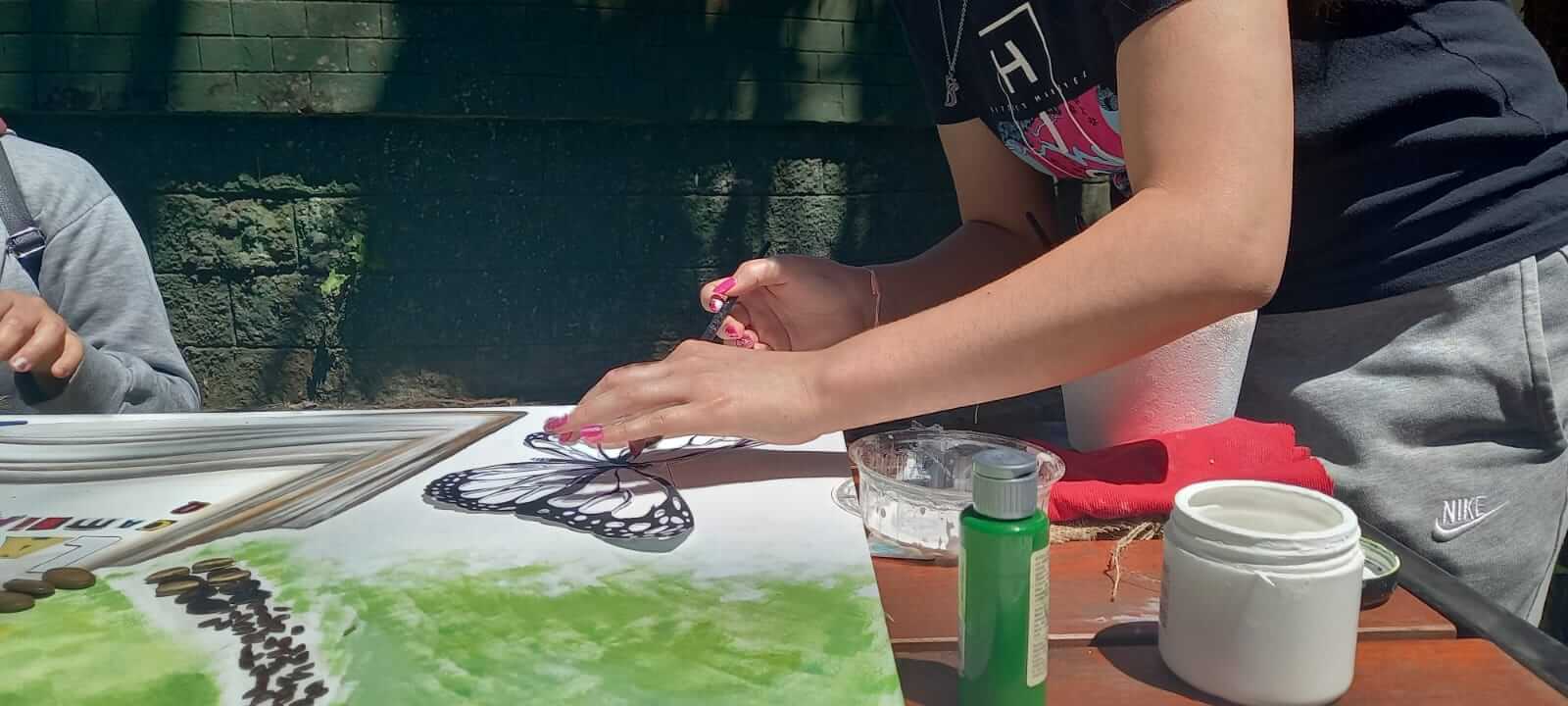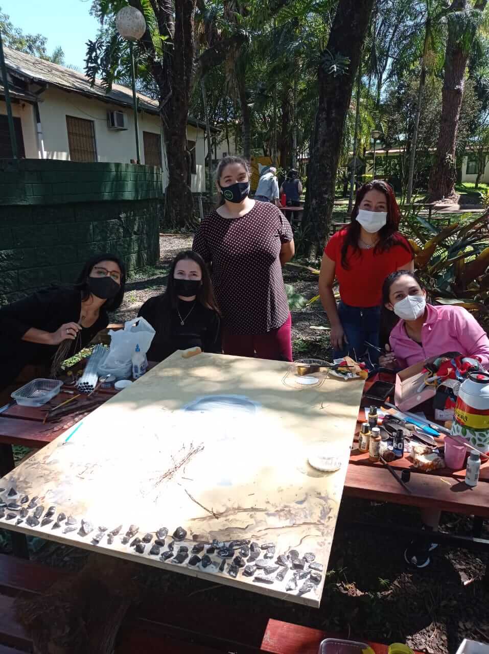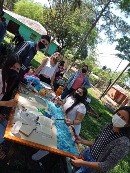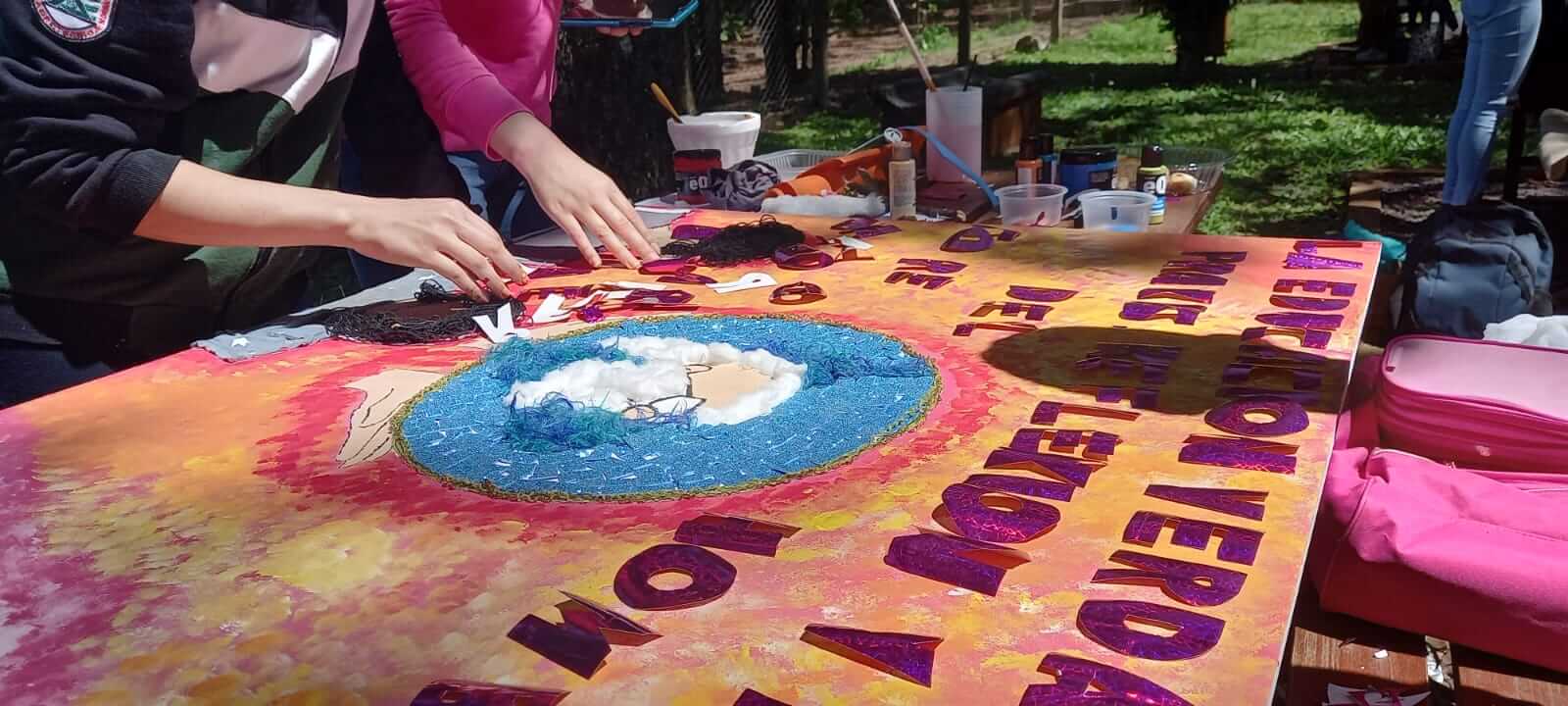 La elaboración de esta intervención artística, se realizó en dos jornadas y contó con el acompañamiento de las artistas Andrea Moschen y Adriana Seifert.
